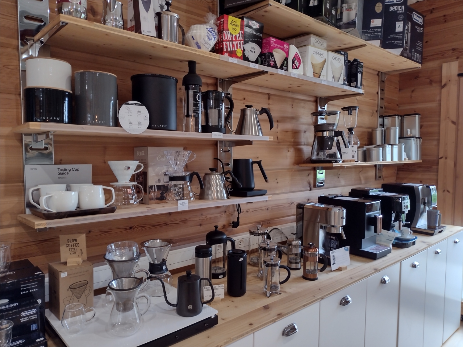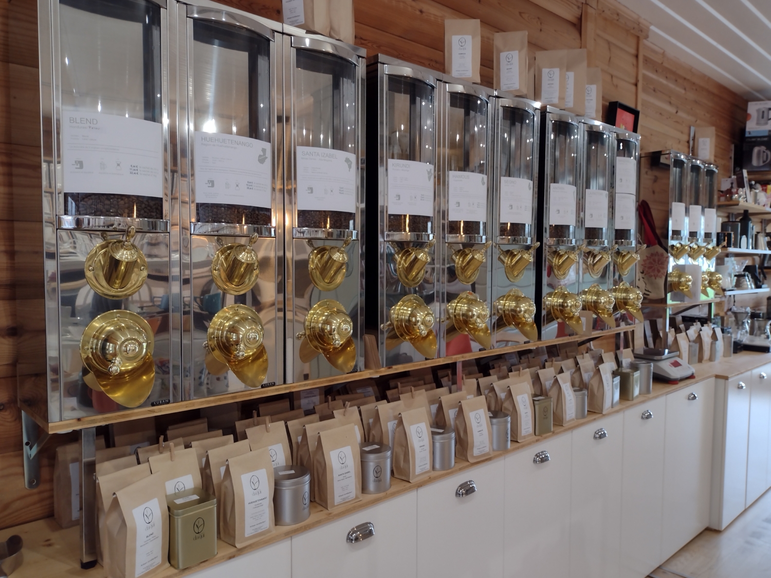 L’accueil est dépaysant : on quitte les constructions urbaines d’Étienne Billières pour entrer dans une forêt. Entre les cafetières à filtre et celles à piston, les distributeurs en métal de dizaines de variétés de cafés, les comptoirs en bois et les murs en planches, difficile de se croire en centre-ville de Toulouse. Le bâtiment original était proche du chalet de montagne. José l’a juste remanié pour créer son identité propre sans renier l’ancienne. Et on y est si bien qu’on resterait volontiers des heures. On voudrait goûter chaque sachet en rayon dans cet ordonnancement paisible, hors du tumulte.